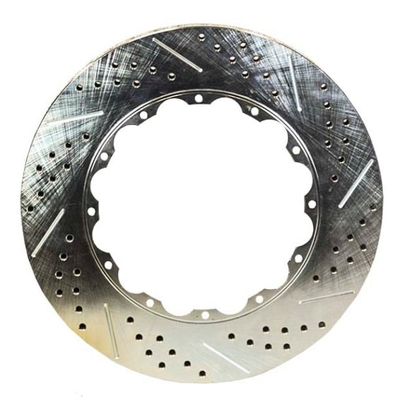 2-piece, slot, drilled and zinc-plated finish replacement rotor ring used in select Baer Brake systems. Note: These rotors are directional and specific to the left or right side of the vehicle. If you are unsure on what rotor you need, please contact our sales department for assistance. Rotors sold individually.